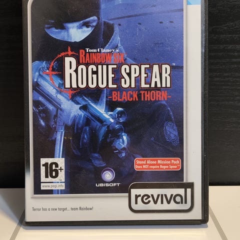 Tom Clancy's Rainbow Six Rogue Spear PC-spill inkluderer original Rogue Spear og Mission Pack: Urban Operations. Spillet er et taktisk førstepersons skytespill med fokus på lagbasert strategi og realistiske oppdrag. Passer for PC-plattform og inneholder to fysiske disker med spilldata.
