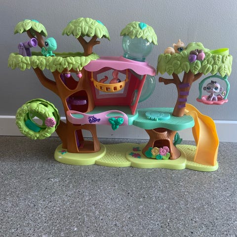 Littlest Pet Shop lekesett "LPS rollin' Rolleroos" bestående av et 2 etasjes lekehus med flere rom og tilbehør.