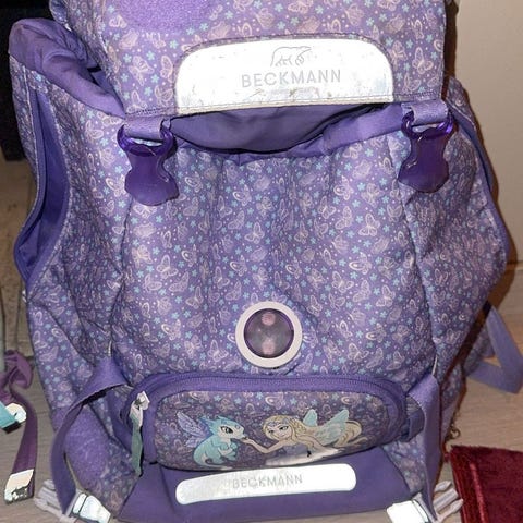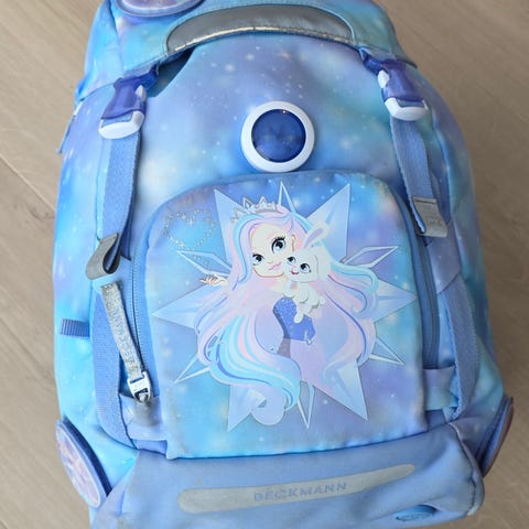 Beckman skolesekk modell «Classic star, princess». Sekken fungere fint uten hull, men har noe bruksmerker. Lyset fungerer ikke.