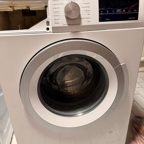 Denne tåler alt av sand og skit. Har ikke vannpumpe så den må stå slik at vannet kan tømmes nedover. Stativ kan følge med for 1000 ekstra. Da står den 30cm over gulvet. Denne kan ikke stå rett på gulv. Ny pris 25000