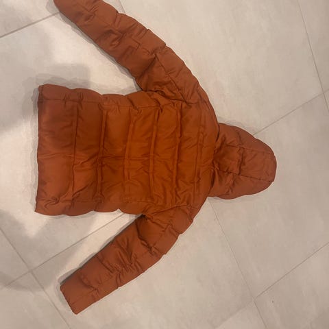 Tynn og praktisk boblejakke fra Jotunheim, blå. Strl 140. Brukt av ett barn. Et lite hull på ermen som er lappet. Se bilde.