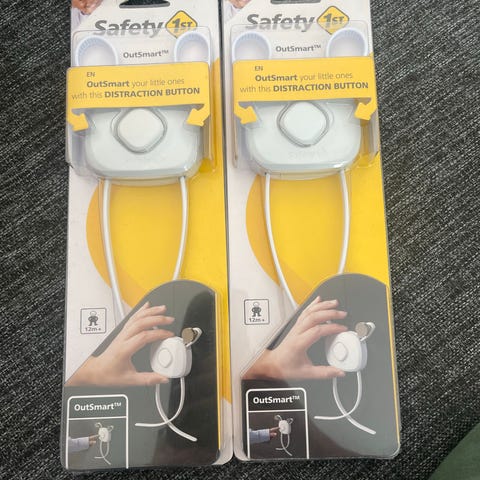 sikkerhetslåser designet for å hindre barn i å åpne skap og skuffer. Produktene er laget i hvitt materiale og festes med selvklebende bakside. De egner seg for bruk i hjemmet for å sikre skap og skuffer mot uønsket åpning.