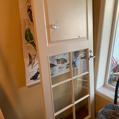 Dørene er et par, med doble hengsler som gjør at de kan åpnes nær 180 grader i begge retninger.