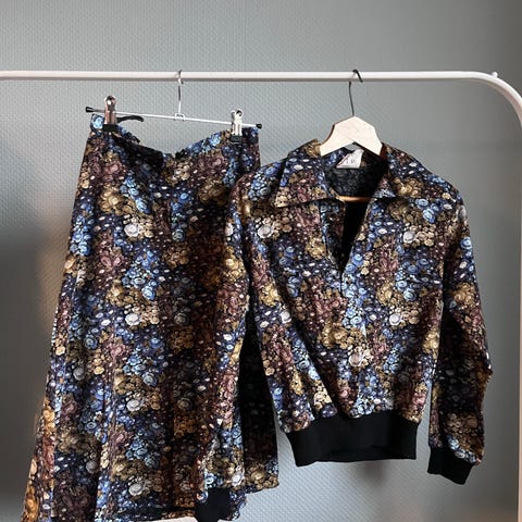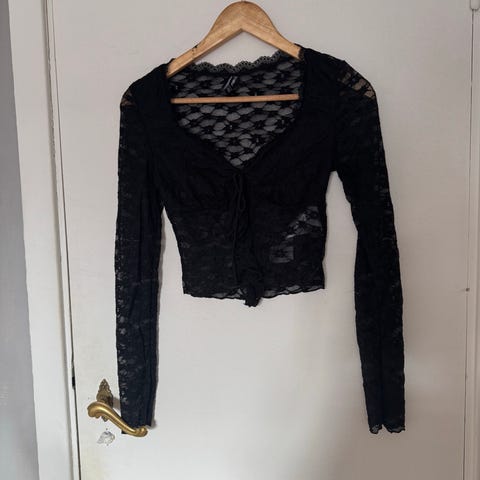 Vintage goth-bluse kjøpt tidlig på 90-tallet. Litt trang på armene, men ellers tilsvarende str. s. 90s vintage.