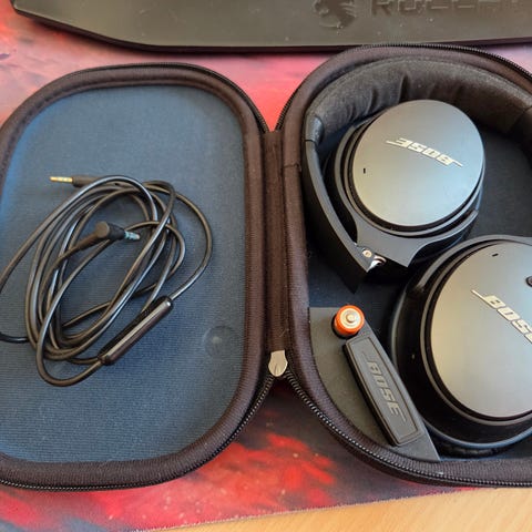 Selger et par lite brukt Bose Quietcomfort 25. overgangsplugg til Apple produkter medfølger.