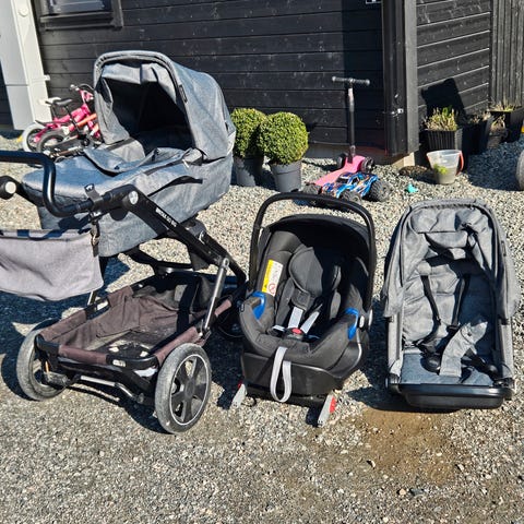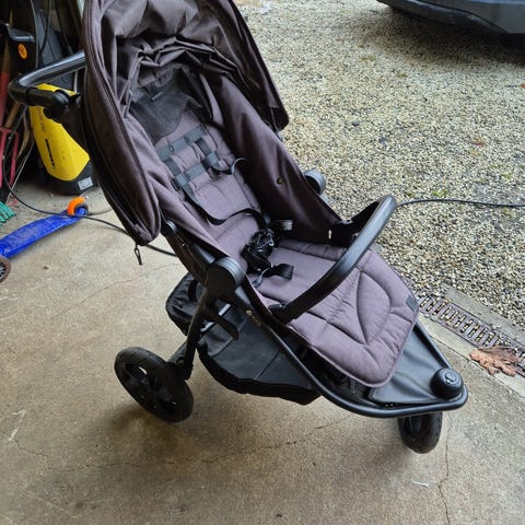 Britax Barnevogn i lilla farge. Passer for barn og har justerbar ryggstøtte og solskjerm. Utstyrt med sikkerhetssele og oppbevaringskurv under setet. Fire hjul med svingfunksjon foran for enkel manøvrering