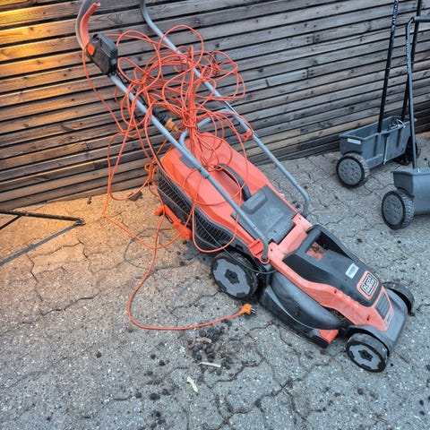 Park & Garden elektrisk gressklipper med grønn farge. Utstyrt med håndtak for enkel bruk og justerbar klippehøyde. Egnet for hagearbeid og vedlikehold av gressplen.