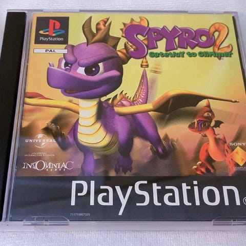 Spyro PlayStation spill for PlayStation-konsoll. Spillformat på CD, kompatibelt med PlayStation-system. Inkluderer spilldisk og originalt spillcover med informasjon og bilder fra spillet.