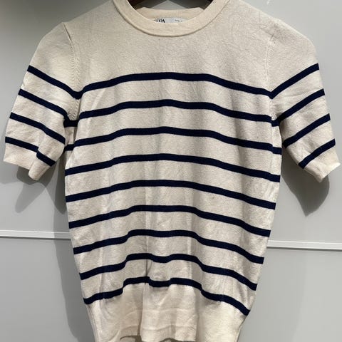 FIN STRIKKET GENSER - NATURHVIT MED SORTE STRIPER - FRA ZARA 🔆