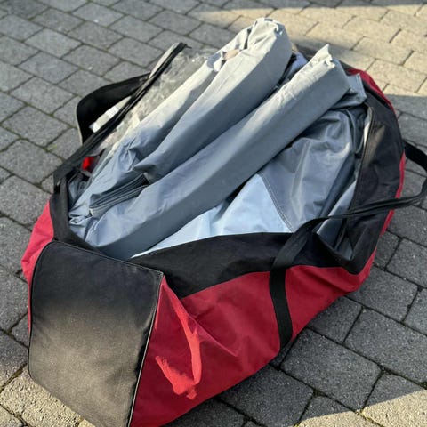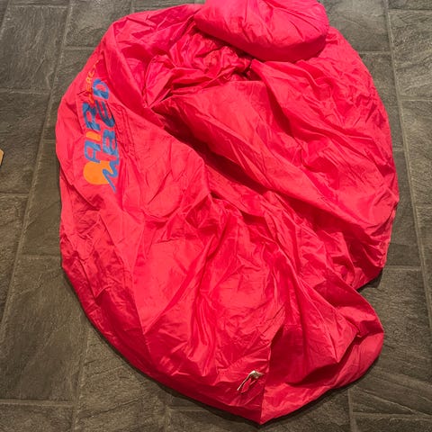 4 stk vanntette bagasjeposer i forskjellige størrelser. Julerlød farge. XL er 60 cm lang og ca 120 omkrets. S er 40 lang og ca 60 omkrets.