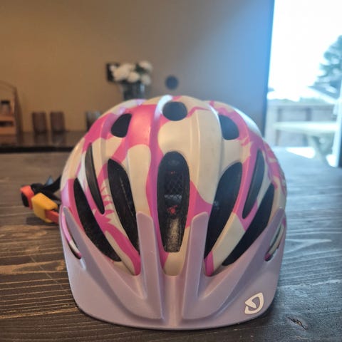 Giro Scamp sykkelhjelm i blå farge, størrelse 45-49 cm. Hjelmen er designet for barn og har justerbar passform for økt komfort og sikkerhet. Materialet er lett og slitesterkt, egnet for sykling.