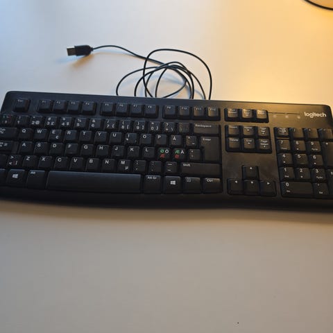 Logitech Standard USB Tastatur Tilleggsutstyr med kabeltilkobling. Tastaturet har standard norsk tastaturoppsett og er laget for generell bruk med datamaskiner. Produktet er svart og kobles til via USB-port.