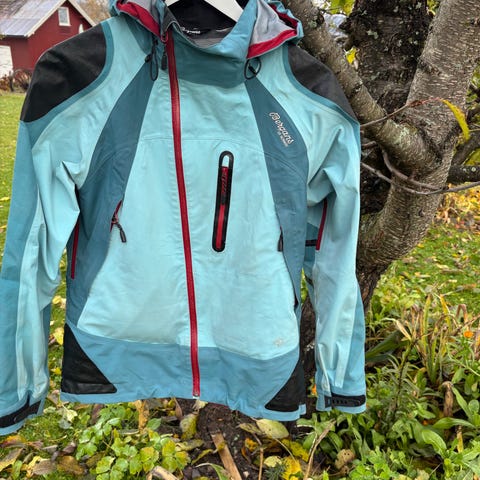Bergan Jakke og Bukse størrelse XL. Fint vind og vannavstøtende hovedmateriale for maksimal beskyttelse. Lettere materiale på ermene for god pusteevne og fukttransport.