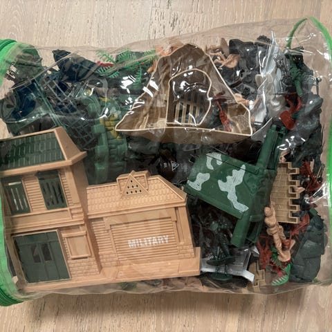 Selger et blandet sett med mikro-størrelse militærkjøretøy. Perfekt for lek for små entusiaster av militærkjøretøy!