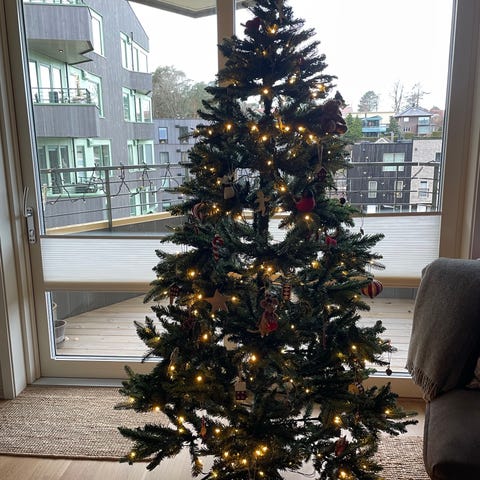 Jysk Jul dekorasjonstre med LED-lys, laget for innendørs bruk. Treet har tynne grener med integrerte små LED-lys som gir et dekorativt lys. Passer til juledekorasjon i hjemmet eller kontoret.