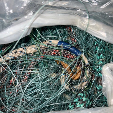 Selger flere fiskegarn, ukjent alder og tilstand.