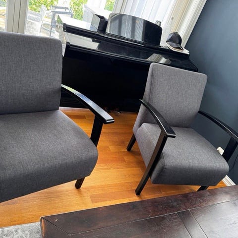 En ny stol koster 6795 kr. Samlet pris er 13 590 kr. Selger disse samlet for 8000 kr.