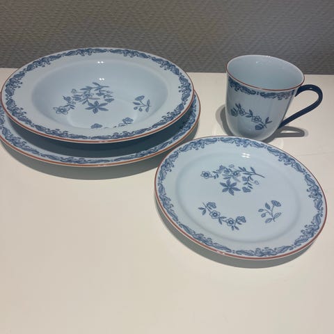Selger mitt nydelige Rörstrand Ostindia servise i blått.