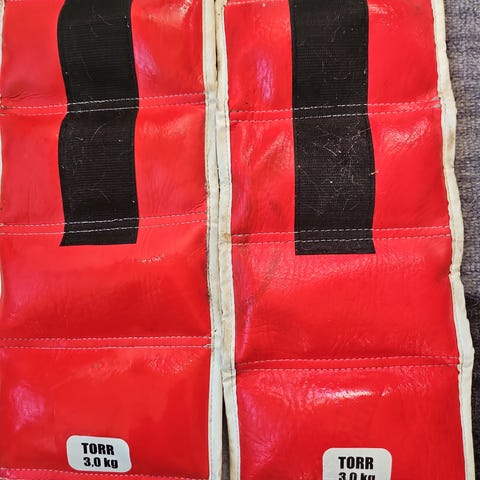 2 ankel/wrist vekter som kan bli brukt til flere ting og er brukt ett par ganger, de begge veier 2kg