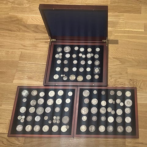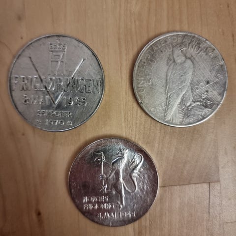 Her kan du få deg ett rimelig sjeldent sett fra Polar året 2007, med Pangia sølvsmykke. Er kun laget 1000 slike sett på verdensbasis. Di to myntene er i proof kvalitet. 4000kr ink frakt