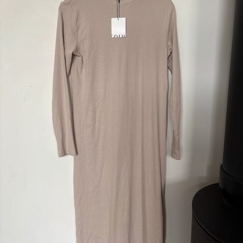 Zara Hverdagskjole i størrelse M, farge svart. Kjolen har en enkel design med snøring ved halsen og korte ermer. Egnet for hverdagsbruk.