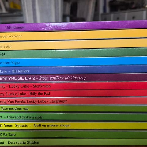 45 stk. Semic Tegneserie Samler klubben samling med ulike titler som Lucky Luke, Valhall og Gode Gamle Viggo. Serien inkluderer flere fargerike utgaver med varierende historier og karakterer. Passer for samlere og lesere av tegneserier.