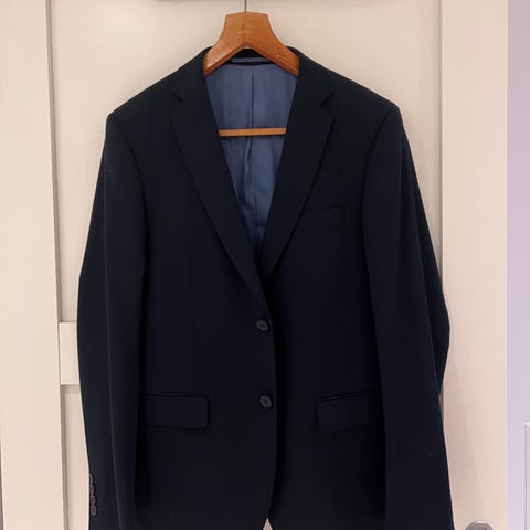 Selger en så godt som ubrukt marineblå Morris Stockholm Howard suit i størrelse 48. Dressen er kun brukt et par ganger. Buksen er sydd ut noe i livet.
