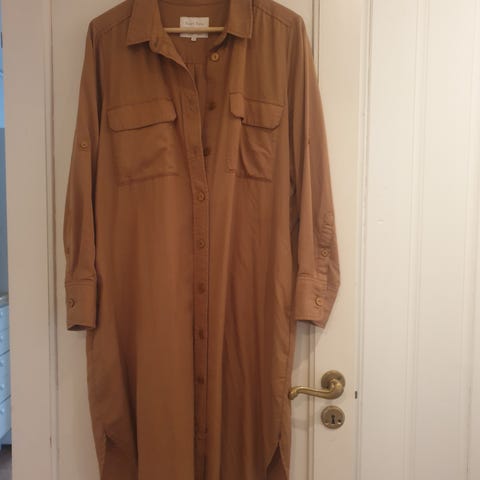 Banana Republic skjortekjole i størrelse M, fargen grønn. Kjolen har lange ermer, knapper foran, to brystlommer og belte i livet. Materialet er mykt. Litt liten i størrelsen.