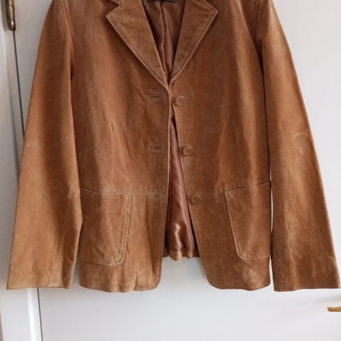 Super kul skinnjakke i størrelse L, farge svart. Jakken er laget av skinn og har klassisk design med knappelukking og lommer. Godt brukt - men har mer å gi! Mangler en knapp ved den ene mansjetten, sorte klassiske knapper så vil være greit å finne erstatter.