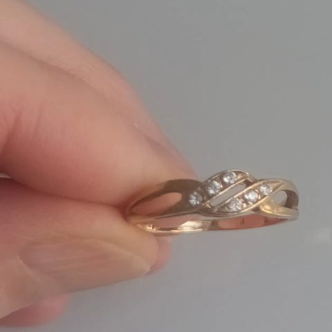 Selger en elegant gullring i 14 karat gull (stemplet 585). Ringen har klassisk design med en liten klar stein i front (diamant eller zirkon). Tidløs modell som passer både til daglig bruk og spesielle anledninger.
