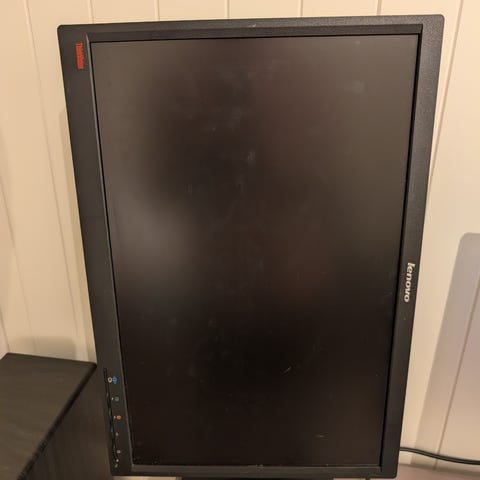 Lenovo 24-tommers dataskjerm med skjermstørrelse på 24 tommer. Skjermen har tilkoblingsmuligheter inkludert VGA, DVI og USB-porter. Designet for bruk med datamaskiner, egnet for kontor- og hjemmebruk.