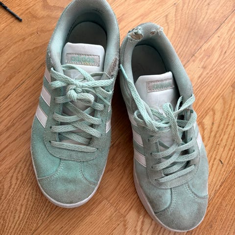 * Adidas Campus barnesko i størrelse 35 1/2, unisex modell. Skoene er grå med hvite detaljer og laget i semsket materiale. Nypris 799,- selges kr 350,-