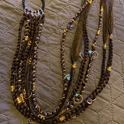 Vintage hårpynt, ser ut som sort lær