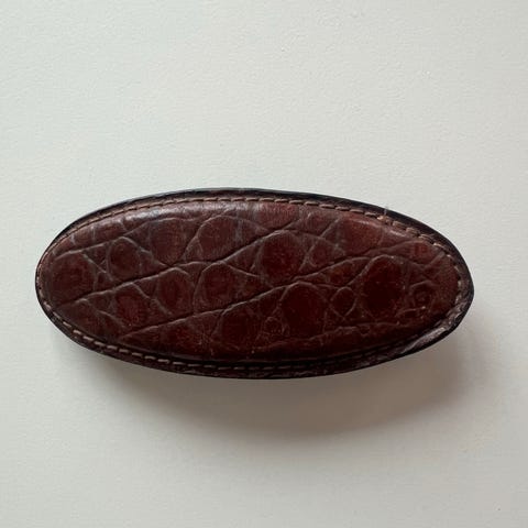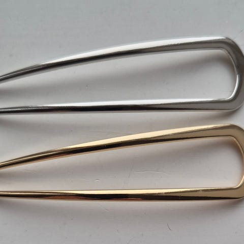 Sort hårpynt. Lengde sort pinne er ca.14cm. Selve pynten er ca.10x5cm og ser ut som lær eller etterligning av lær. (Jeg vet ikke hva materialet er)