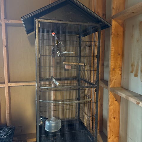 Flott papegøyebur til salgs. Ny ordinær pris over 12000. På salg fra butikk 8000, vår pris 4500. Må hentes. Kan få Råda sand 20 kg pluss stiger og leker til papegøye ved snarlig kjøp