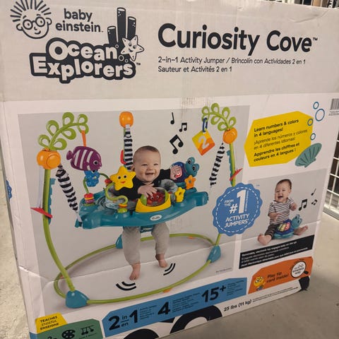 Baby Einstein sprettende huske med leker som spiller musikk, veldig gøy for småbarn.
