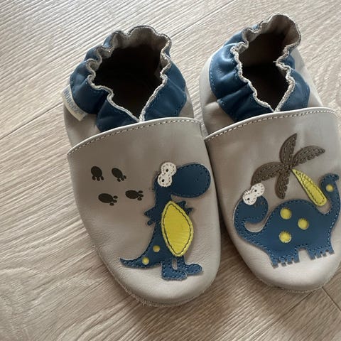 Skinntøfler fra Barnas hus. Størrelse 2-3 år. Gis bort ved henting. En del slitemerker med fortsatt brukbare.