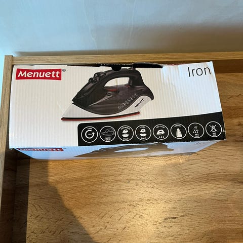 Kenwood Classic strykejern med hvit og grå farge. Elektrisk strykejern med ledning, designet for manuell stryking av klær og tekstiler.