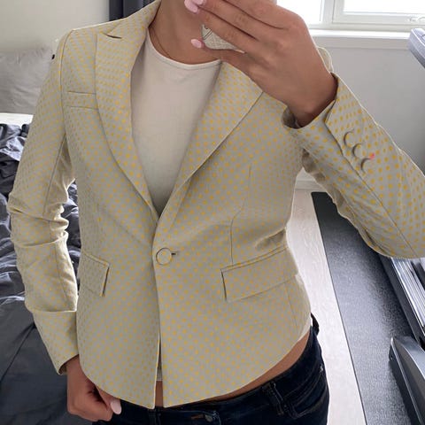 Pent brukt retro blazer / dressjakke str M i grå farge. Bla bla.