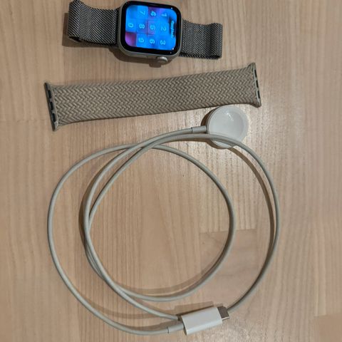 Selger en Apple Watch SE (44mm) i svart. Klokken er pent brukt med noen bruksmerker, fungerer som den skal. Jeg selger den fordi jeg trengte en mer avansert løpeklokke med lengre batteritid. Dette er en rimelig og funksjonell smartklokke som passer perfekt til både hverdag og trening.