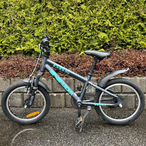 Hjulstørrelse 16. Frambremsa trengs å fikses. Bakbremsa på trødene fungerer😊