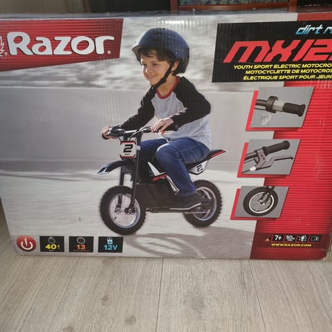 Speedy Super Sport barnemotorsykkel i rød farge. Designet for barn med plastmateriale og dekorative detaljer som racingnummer og logoer. Egnet for lek og utendørs bruk.