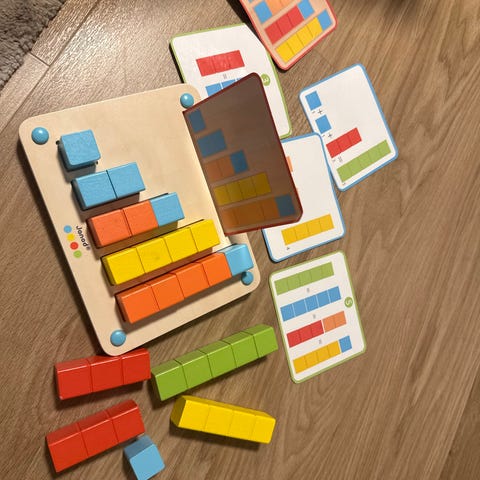 Blafre barnehagesekk, veske og to lommebøker.