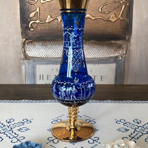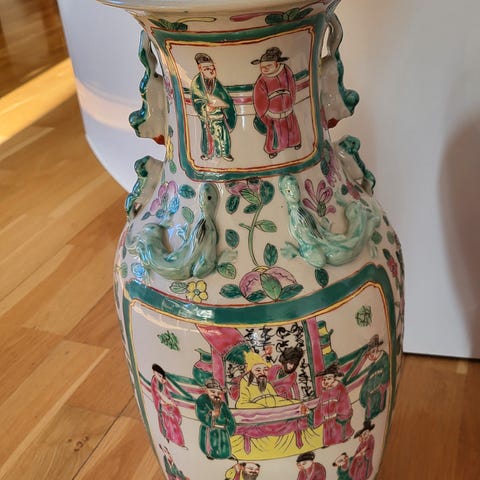 Den ene med typisk kinesisk motiv og farger , med fugler og blomster m/gull