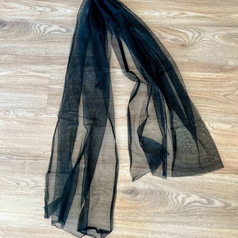 Tyllstoff som er lagt dobbelt og sydd en søm øverst med strikk i slik at det enkelt kan syes sammen i enden og brukes som skjørt. Det kan brukes som kostyme evt til utdrikningslag. Man kan fjerne sømmen øverst og da har man 10 meter tyllstoff i 130 cm bredde som kan brukes til det man måtte ønske. Det er så stor vidde at man kan sikkert lage 2 skjørt, kanskje 3.