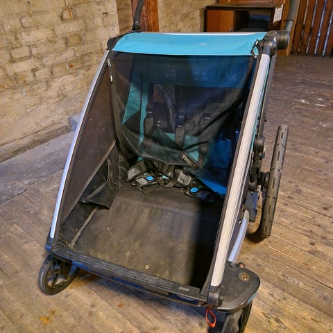 Thule chariot 2 selges med joggekit, trekk, vinterdekk, baklykt, vinterpose. Lite brukt og lagret i garasje.