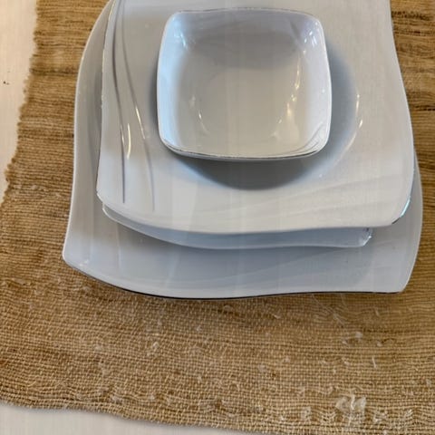 Meget fint Nyt servise fra Firkløveren Victoria . 2 middag , 2 frokost og 2 små appertiff skåler selges samlet for 400