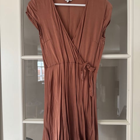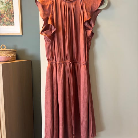 Selger en nydelig kjole fra H&M i delikat rosa silkelook som gir den et eksklusiv look.