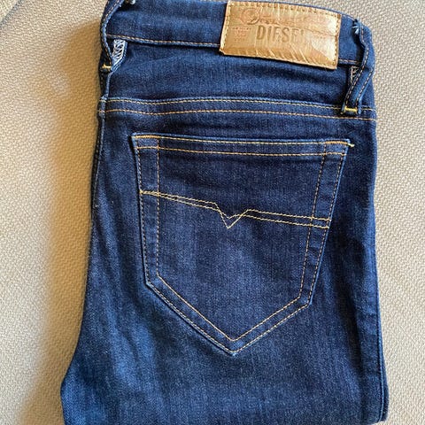 Kule Diesel Skinzee jeans i blå farge, størrelse dame lengde L32 med midjevidde W27. Laget i stretchmateriale gjør dem veldig komfortable og bevegelige.