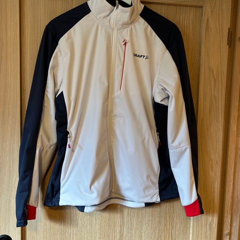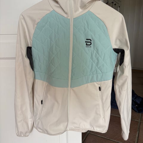 Ny jakke brukt to ganger. Hvit/lys beige farge med To lommer og en pyntelomme på brystet.